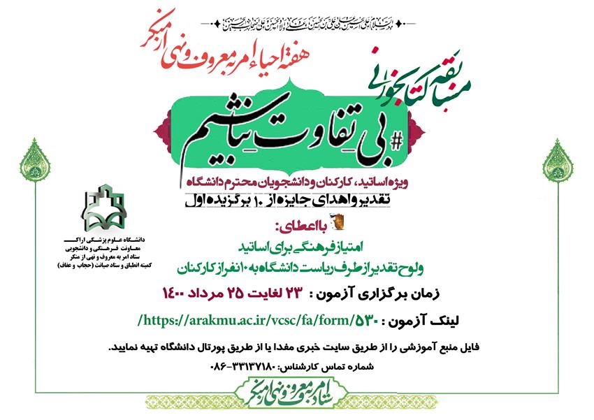 مسابقه کتابخوانی بی تفاوت نباشیم ۲۰ مرداد ۱۴۰۰ | ۰۹:۱۲ کد : ۱۹۲۷۳ اطلاعیه ارسال به دیگران نام شما ایمیل شما ایمیل دریافتکننده ارسال انصراف تعداد بازدید:۲۹۷۳۷ لینک ورود به آزمون
