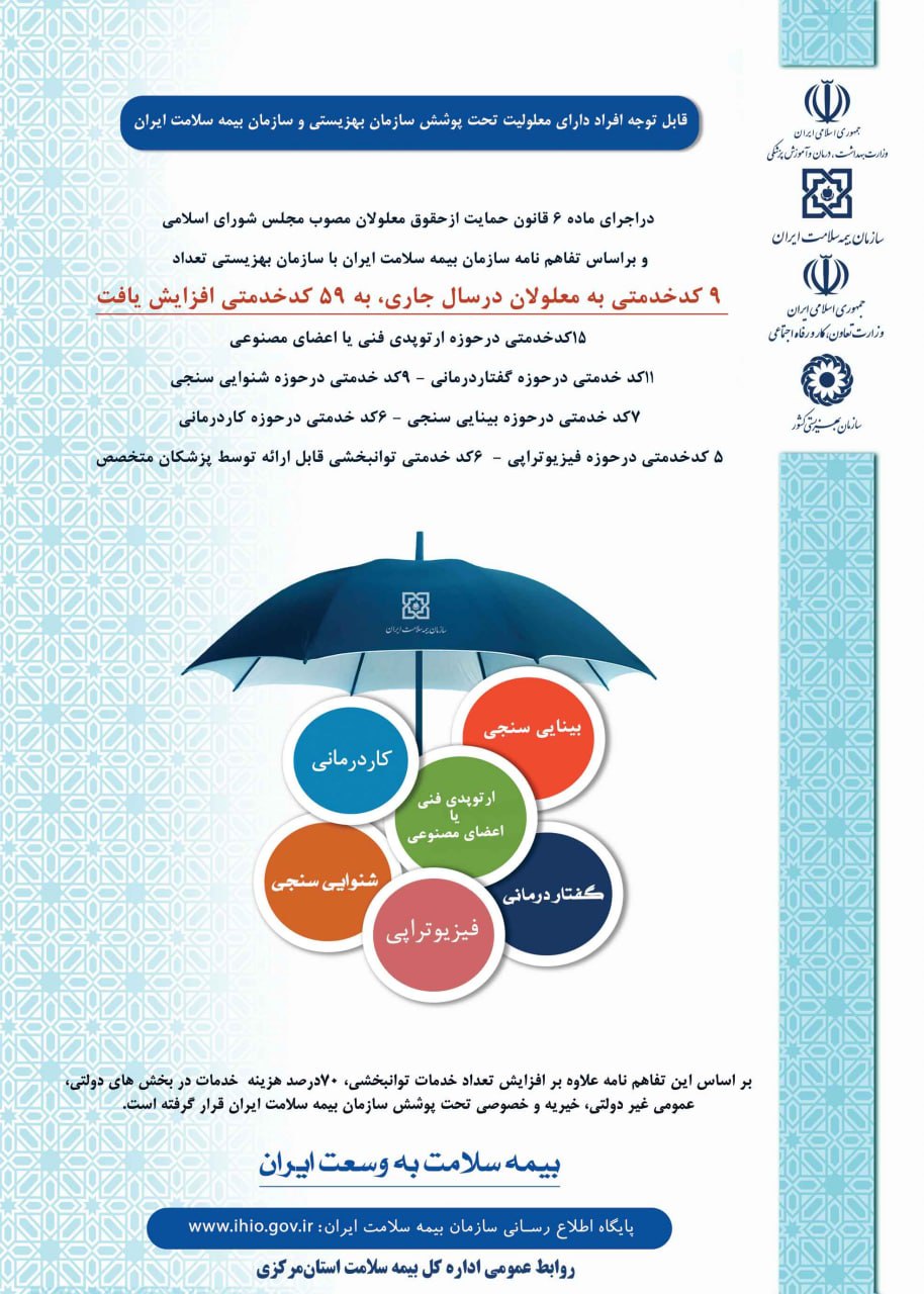 قابل توجه افراد دارای معلولیت تحت پوشش سازمان بهزیستی و سازمان بیمه سلامت ایران ۱۲ آذر ۱۴۰۱ | ۰۹:۵۵ کد : ۳۰۹۷۱ اطلاعیه ارسال به دیگران نام شما ایمیل شما ایمیل دریافتکننده ارسال انصراف تعداد بازدید:۲۲۱۱۰