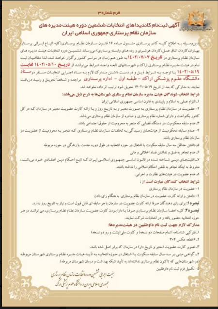 اطلاعیه ثبت نام کاندیداهای انتخابات ششمین دوره هیئت مدیره های سازمان نظام پرستاری ۰۷ مرداد ۱۴۰۲ | ۰۹:۲۲ کد : ۳۶۲۶۴ اطلاعیه ارسال به دیگران نام شما ایمیل شما ایمیل دریافتکننده ارسال انصراف تعداد بازدید:۱۶۹۸۷