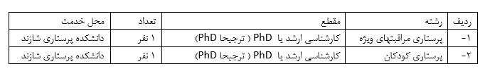 دانشگاه علوم پزشکی و خدمات بهداشتی و درمانی اراک به منظور ترمیم و تکمیل کادر آموزشی مورد نیاز خود در دانشکده پرستاری شازند ، از بین فارغ التحصیلان رشته های پرستاری مراقبتهای ویژه و پرستاری کودکان جهت انجام تعهدات قانونی در قالب هیات علمی دعوت به همکاری مینماید. متقاضیان محترم میتوانند جهت کسب اطلاعات بیشتر و شرکت در فراخوان مربوطه از چهارشنبه مورخ 16/8/1402 لغایت 16/9/1402 با آدرس الکترونیکی  shazandnurse@arakmu.ac.ir مکاتبه و یا با شماره 08638221799  تماس حاصل نمایند.
