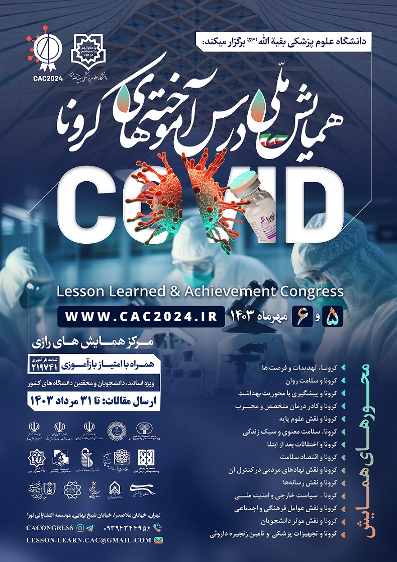 همایش ملی درس آموخته های  کرونا در تاریخ ۵ و ۶ مهرماه ۱۴۰۳ در سالن همایش های رازی تهران برگزار خواهد شد.