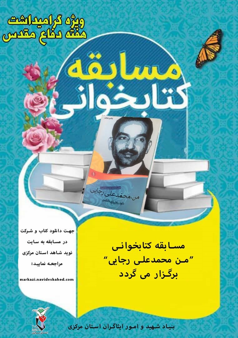 بنیاد شهید و امور ایثارگران استان مرکزی به مناسبت چهل و چهارمین سالگرد هفته دفاع مقدس ، مسابقه ای از کتاب " من ، محمد علی رجایی " از مجموعه کتاب های شهدای دولت ، به صورت مجازی در سایت نوید شاهد به شرح ذیل برگزار می نماید.