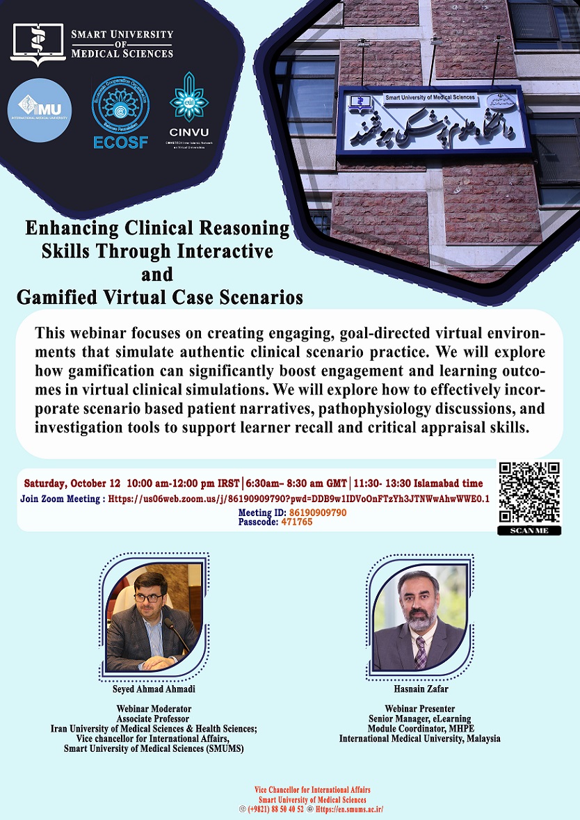 بنا بر اعلام دانشگاه علوم پزشکی هوشمند به اطلاع اساتید دانشجویان و افراد علاقمند می رساند ، با توجه به ضرورت و اهمیت استفاده از فناوری های نوین آموزشی به خصوص هوش مصنوعی در حیطه های مرتبط با آموزش و پژوهش و نقش آن در بهبود عملکرد یادگیری دانشجویان ، با عنایت به استقبال اعضای محترم هیات علمی دانشگاه های علوم پزشکی کشور از این امر ، پیرو هماهنگی های بعمل آمده وبینار بین المللی