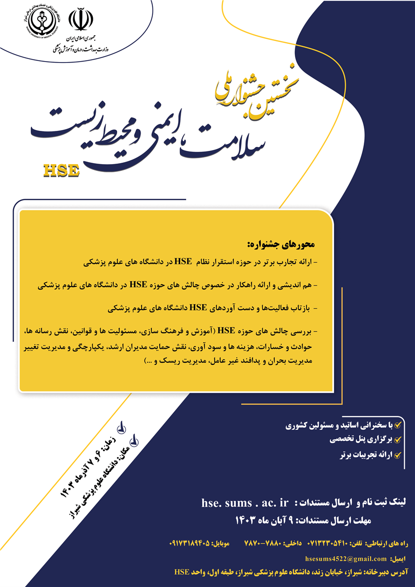 در همین راستا؛ دانشگاه علوم پزشکی شیراز با همکاری وزارت بهداشت و با هدف ترویج فرهنگ ایمنی، ارتقاء، رشد و تعالی HSE و با محوریت بررسی چالش ها و اشتراک گذاری تجارب و دست آوردهای این حوزه در نظام سلامت، «نخستین جشنواره ملی سلامت، ایمنی و محیط زیست" را برگزار می نماید.