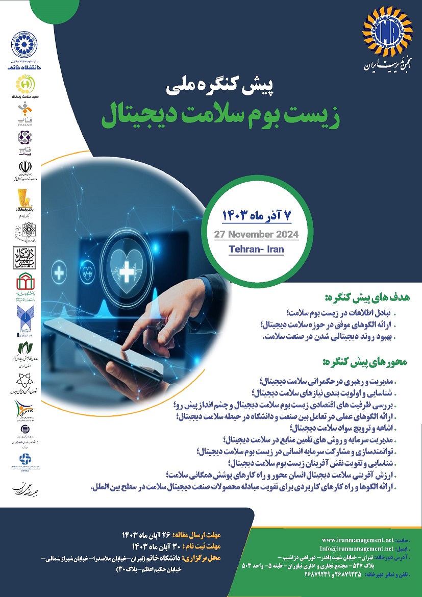 طی اطلاع رسانی رئیس مرکز مدیریت آمار و فناوری اطلاعات وزارت بهداشت، انجمن مدیریت ایران، پیش کنگره ملی زیست بوم سلامت دیجیتال را برگزار می نماید.