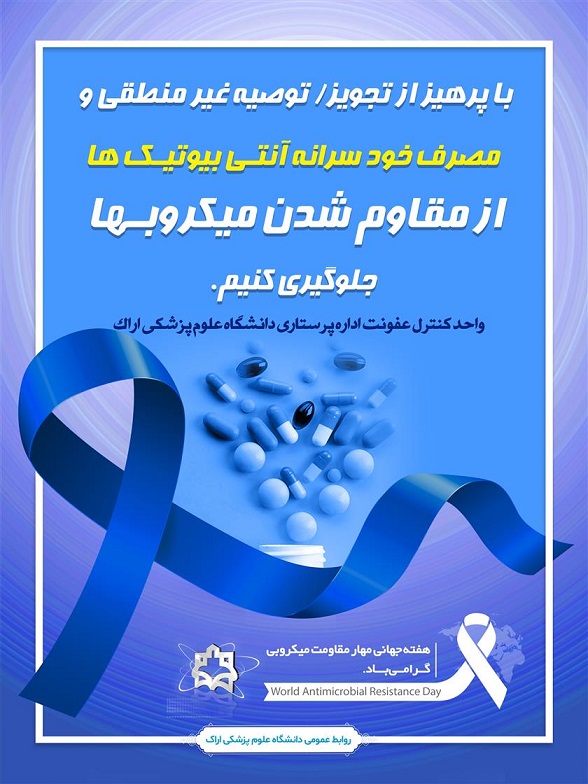 کلیدواژه‌ها: هفته پیام شعار هفته مهار مقاومت میکروبی دانشگاه علوم پزشکی اراک اداره پرستاری وزارت بهداشت مقاومت میکروبی آنتی بیوتیک مصرف خودسرانه آنتی بیوتیک عفونت بیمارستانی
