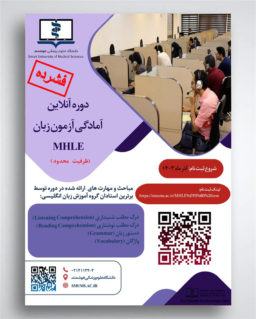 دانشگاه علوم پزشکی هوشمند، دوره فشرده آمادگی آزمون زبان MHLE را برگزار می نماید.