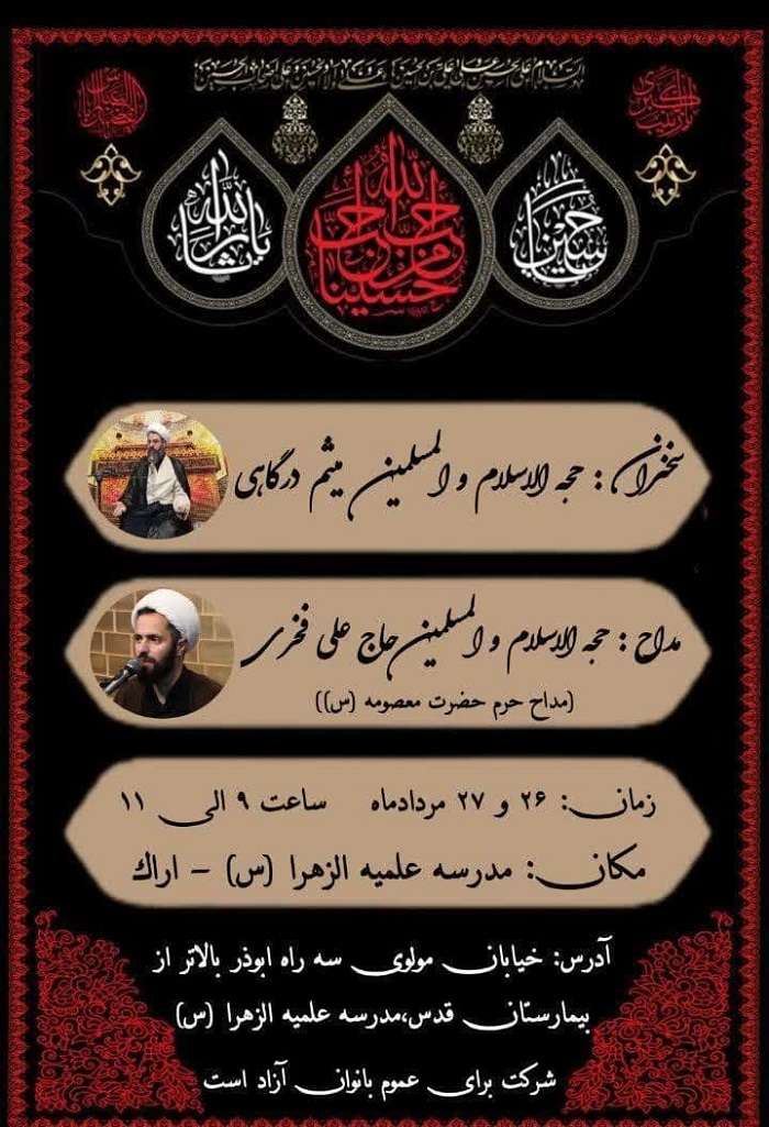 مکان : مدرسه علمیه الزهرا باﻻتر از بیمارستان قدس روبروی شرکت فرش