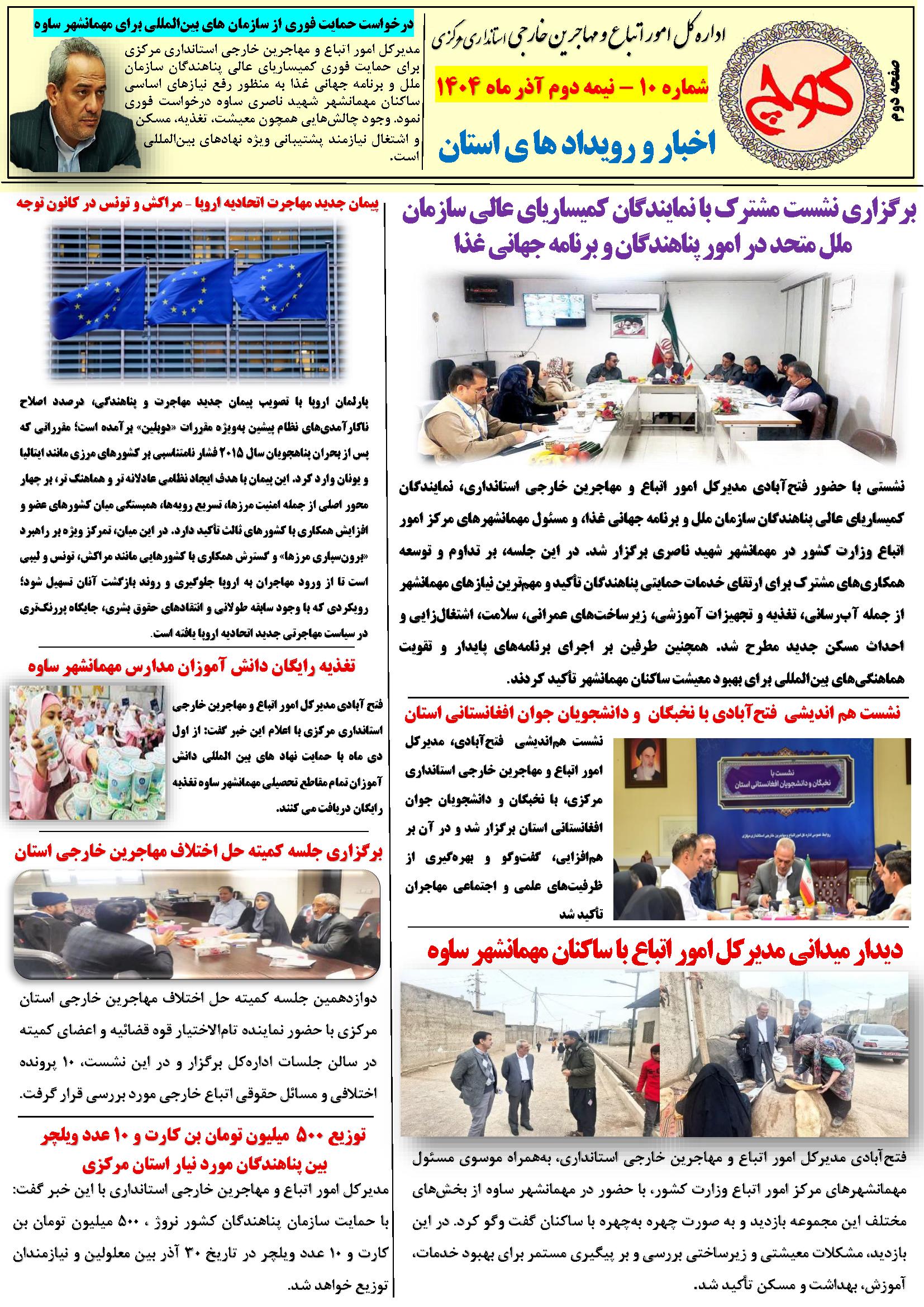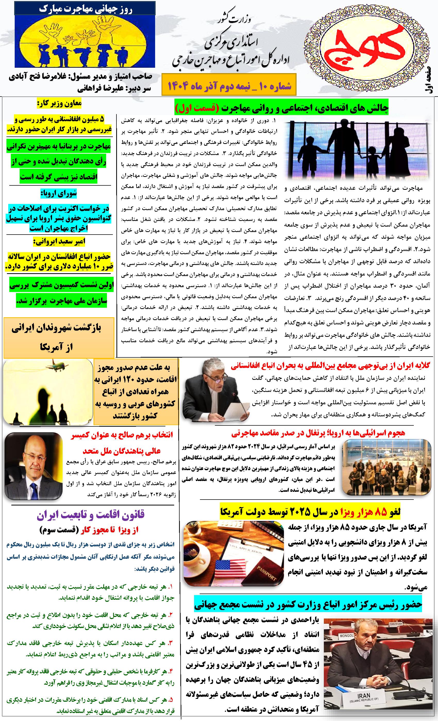 دهمین شماره نشریه کوچ ۰۳ دی ۱۴۰۴ | ۰۹:۲۱ کد : ۵۷۵۲۰ اطلاعیه ارسال به دیگران نام شما ایمیل شما ایمیل دریافتکننده ارسال انصراف تعداد بازدید:۲۶۵ دهممین شماره نشریه کوچ، توسط دفتر امور اتباع و مهاجرین خارجی استان مرکزی منتشر گردید.